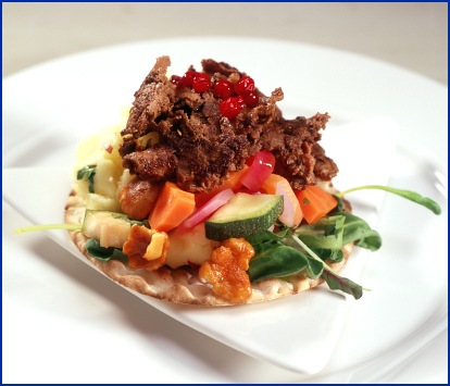 Renkebab på tunnbröd med norrlandspickles och rårörda lingon | |