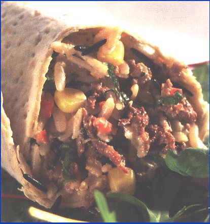 Koka riset enligt anvisningarna på paketet. Smält smör i en kastrull och fräs lök, renskav, spansk peppar och majskorn. Smaka av med salt och peppar. Blanda i det kokta riset, créme fraiche paprika & chili och den strimlade citronmelissen. Bred smör på tunnbrödet och lägg på lite sallad på varje tunnbröd. Fördela renskavsröran på varje och vik ihop tunnbrödet från botten och sedan de två sidorna, som ett kuvert. Servera som lunchrätt. |